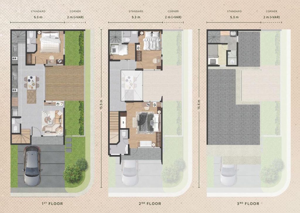 Dimension 5,3 x 15,5 m, 3 Lantai