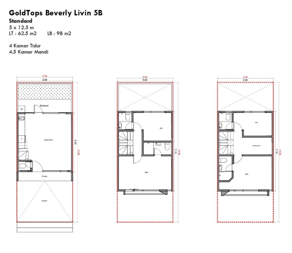 - Luas 5 x 12,5 m