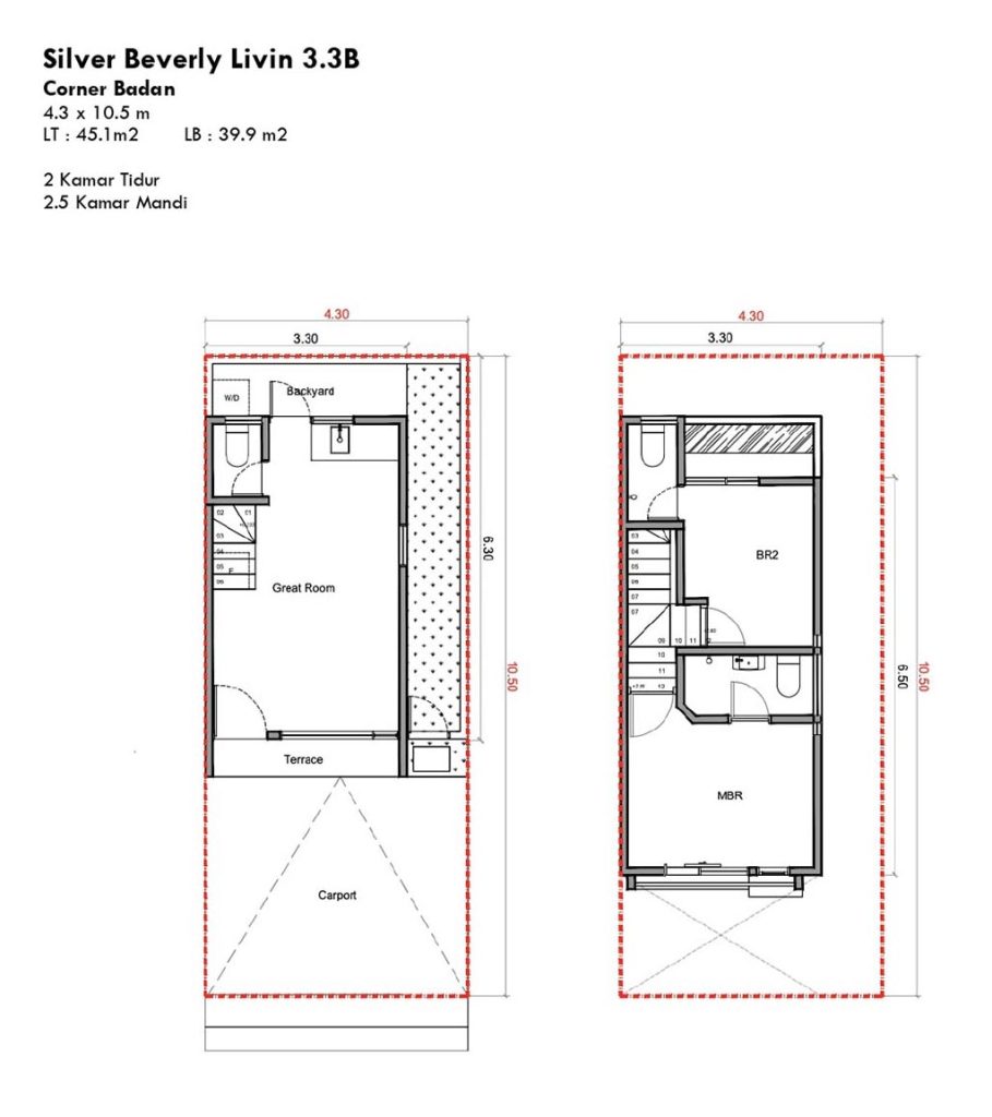 • Luas 3,3 x 10,5 m